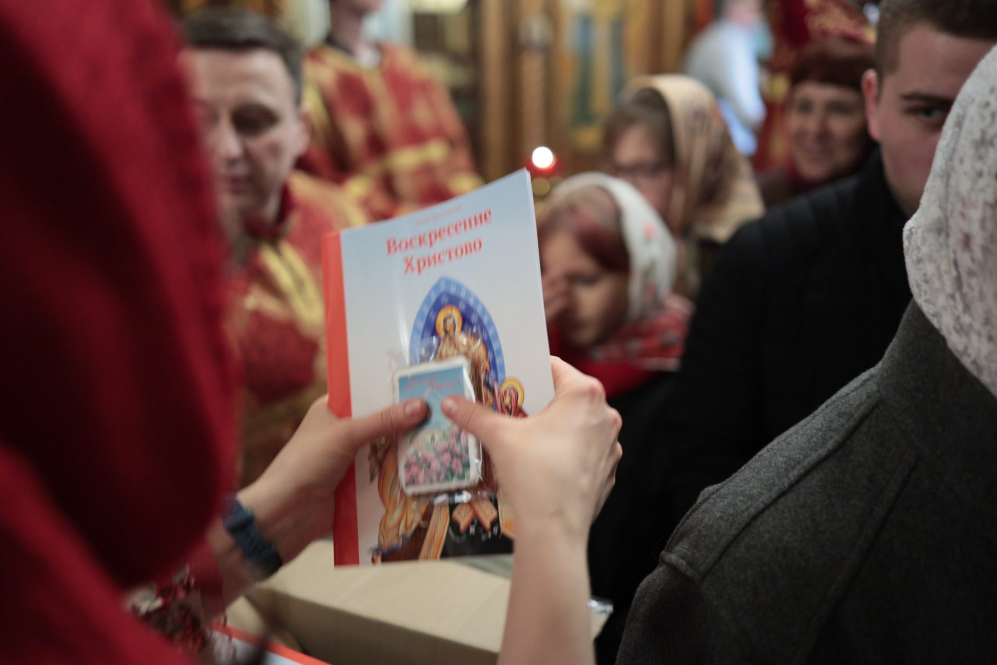 12 апреля на отпусте ночного и утреннего пасхальных богослужений всем присутствующим в храме детям от прихода были вручены в подарок книги «Воскресение Христово» Е. В. Тростниковой.